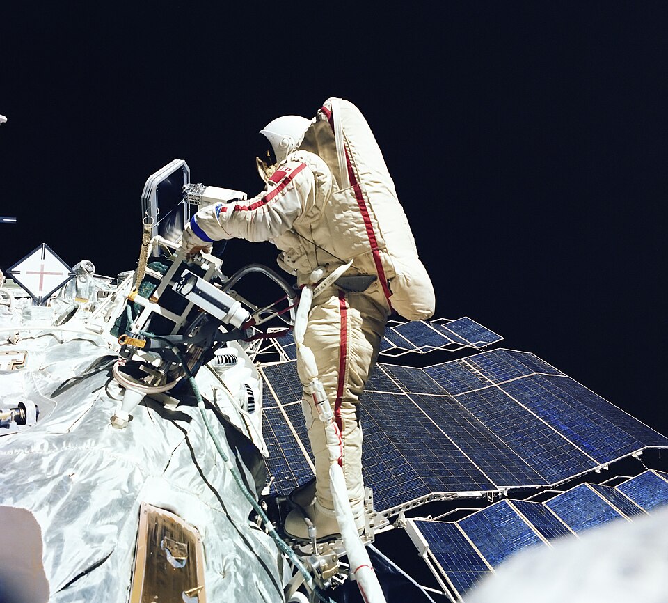 Советская космонавт Светлана Савицкая выполняет сварку в открытом космосе 25 июля 1984 года